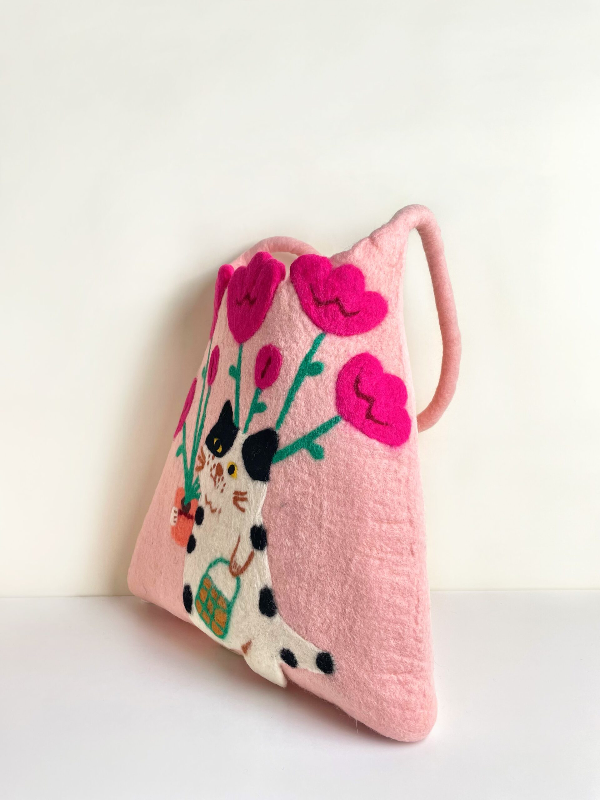 Mody the spotted cat sets off with a tulip in paw and cookies in his bag. From butterflies to sparkling streams, his tulip journey is full of gentle wonders—and now his bright felt bag carries the story too.