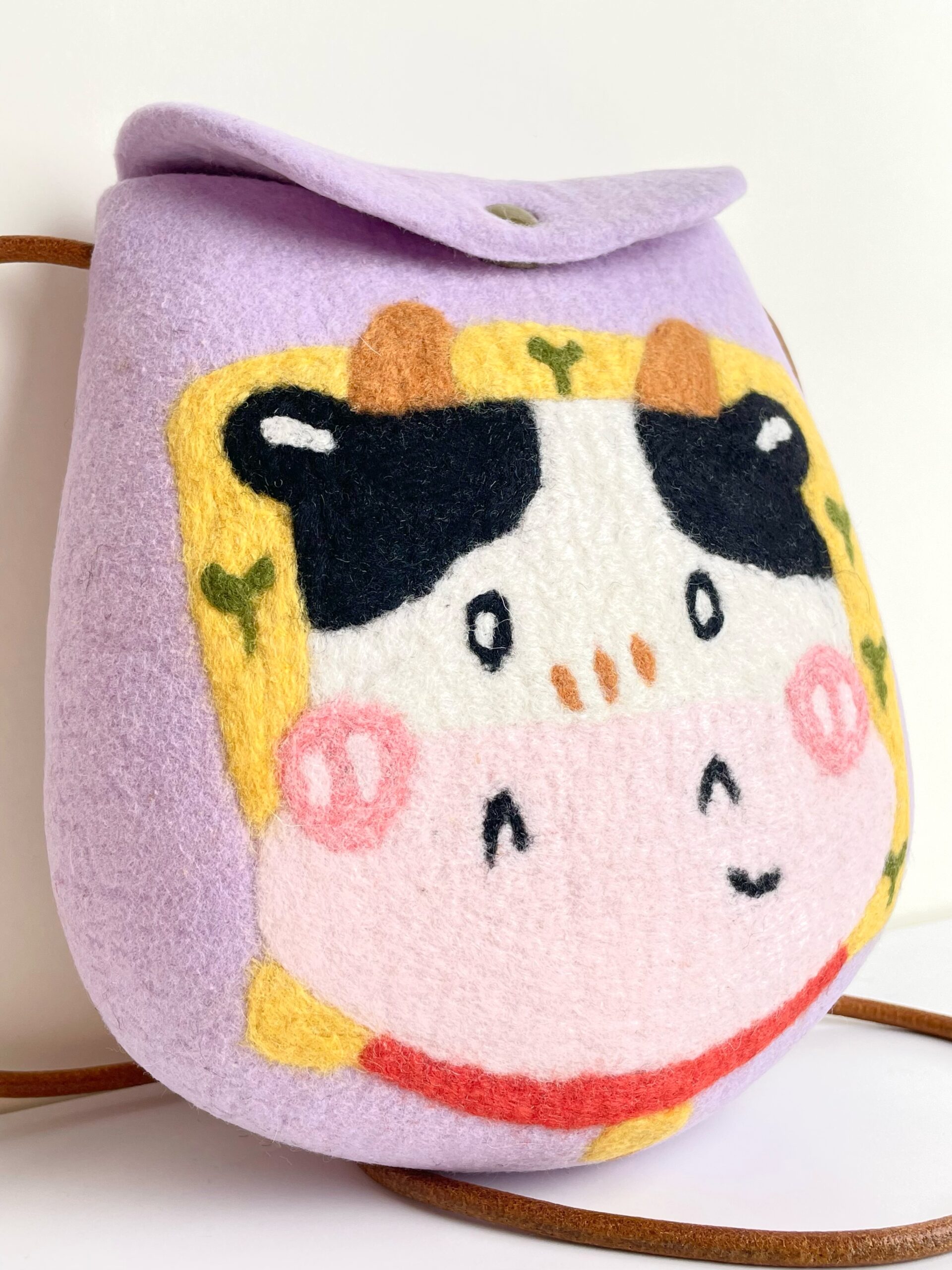 MooMoo carries springtime secrets in her lavender-hued felt bag. Soft, sturdy, and sprinkled with storybook charm, she’s ready to keep your treasures safe.