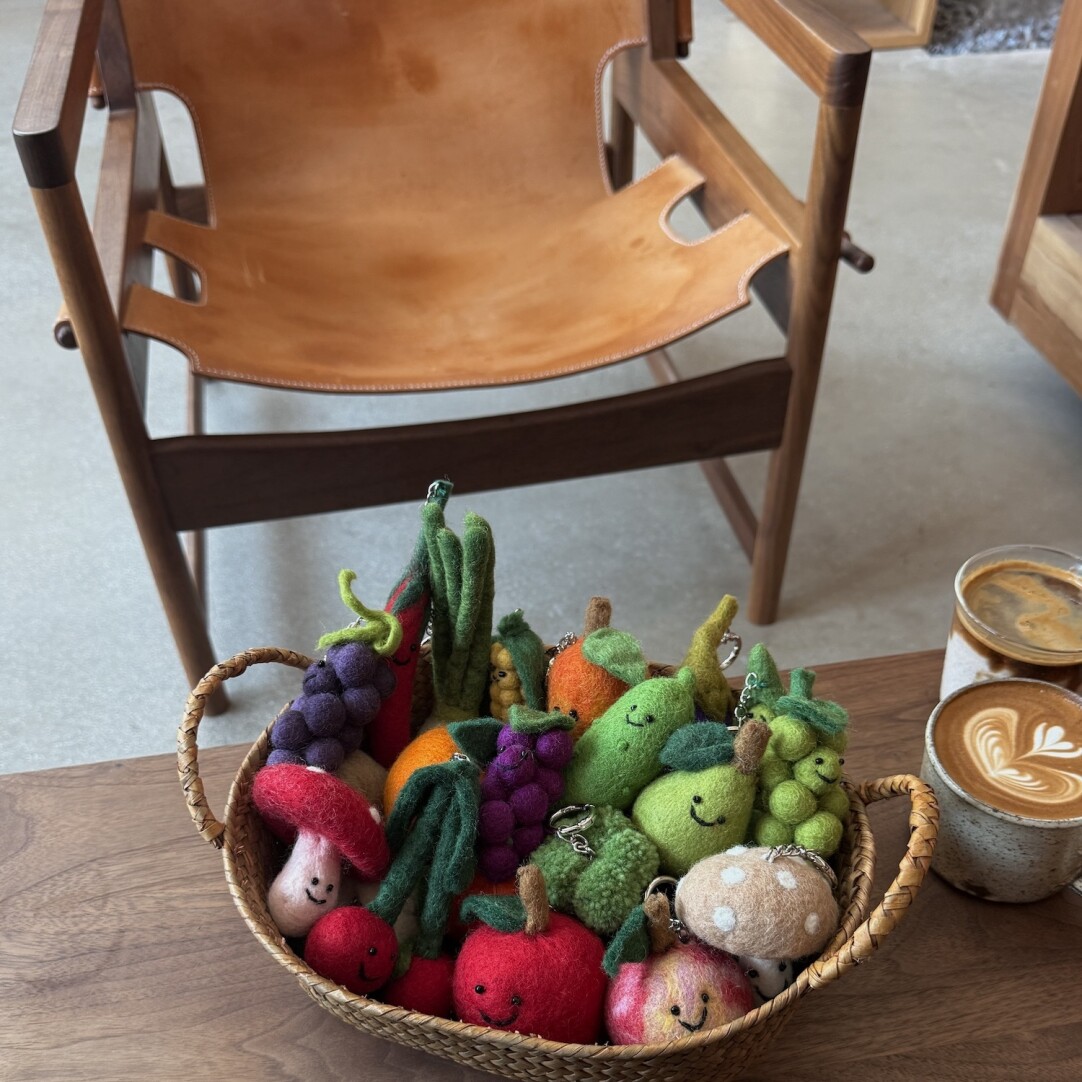 Our wool felt pea keychain is a playful handmade charm. With three smiling peas nestled in their pod, this cute pea in a pod keychain makes a delightful bag or car accessory.